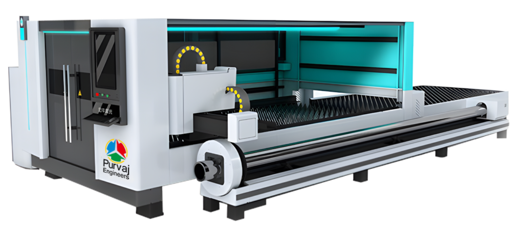 Purvaj Fiber Laser Cutting Machine is engineered to deliver high-speed, high-precision sheet metal cutting for modern fabrication needs. Built with a strong machine structure, advanced fiber laser technology, and intelligent control systems, it ensures clean cuts, excellent edge quality, and reliable performance across a wide range of materials and thicknesses. Designed for productivity, accuracy, and efficiency, it helps manufacturers achieve faster turnaround times with reduced material wastage and lower operating costs.
